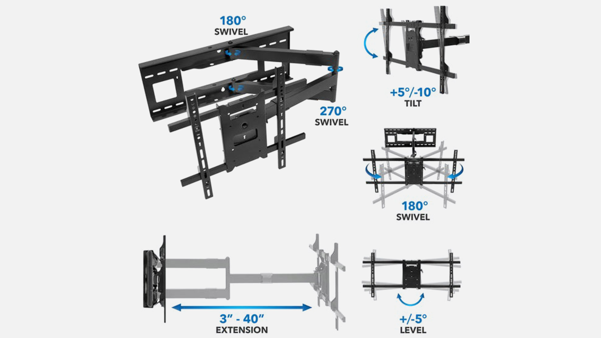 Mount-It! Full Motion TV Wall Mount: Extra Long Extension