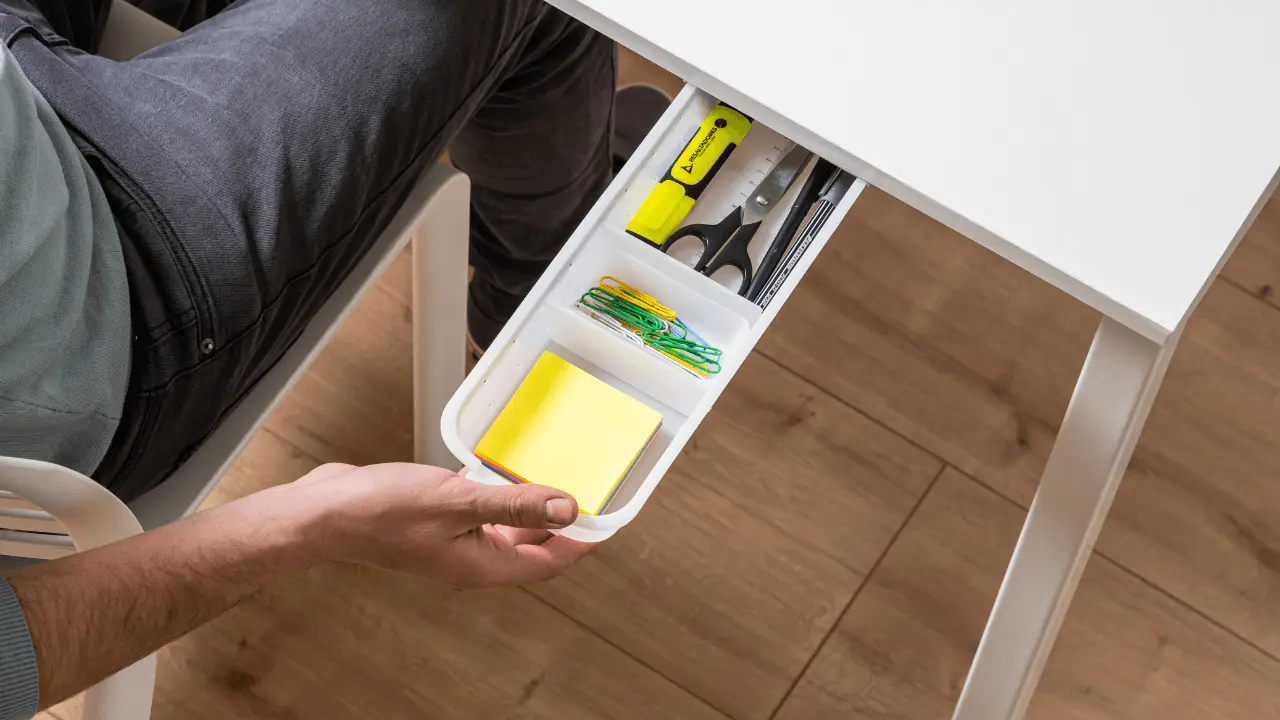Using desk drawer storage helps you keep your workspace organized, improves efficiency by having essentials within reach, and enhances the overall appearance of your desk area. It's a practical solution for both home and office environments.