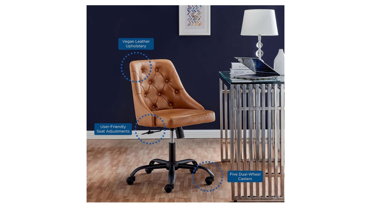 Trio Supply House Distinct Tufted Swivel Vegan Leather Office Chair at a glance.