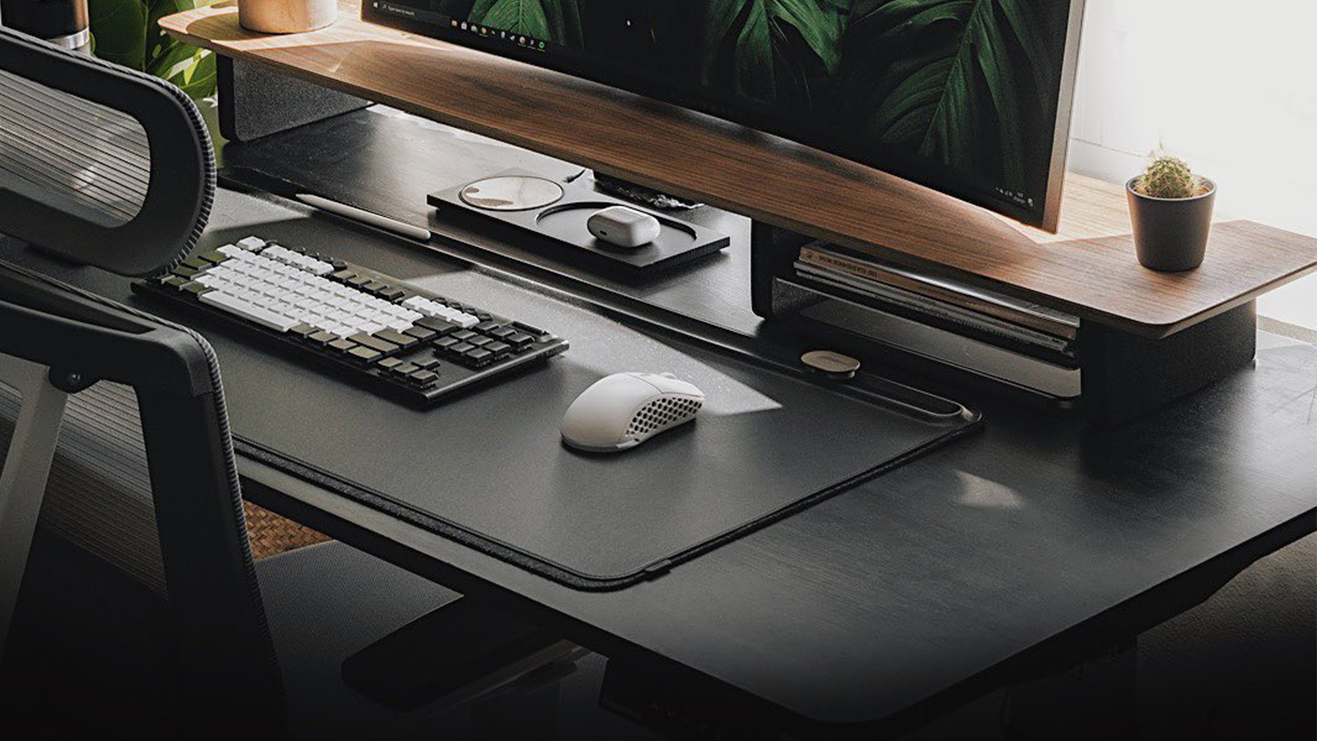FSC-certified MDF or natural bamboo, 53" × 29" and 70.5" x 30" . Rounded edges reduce wrist pressure during long sessions. Available in White, Black, White Oak, and Bamboo.