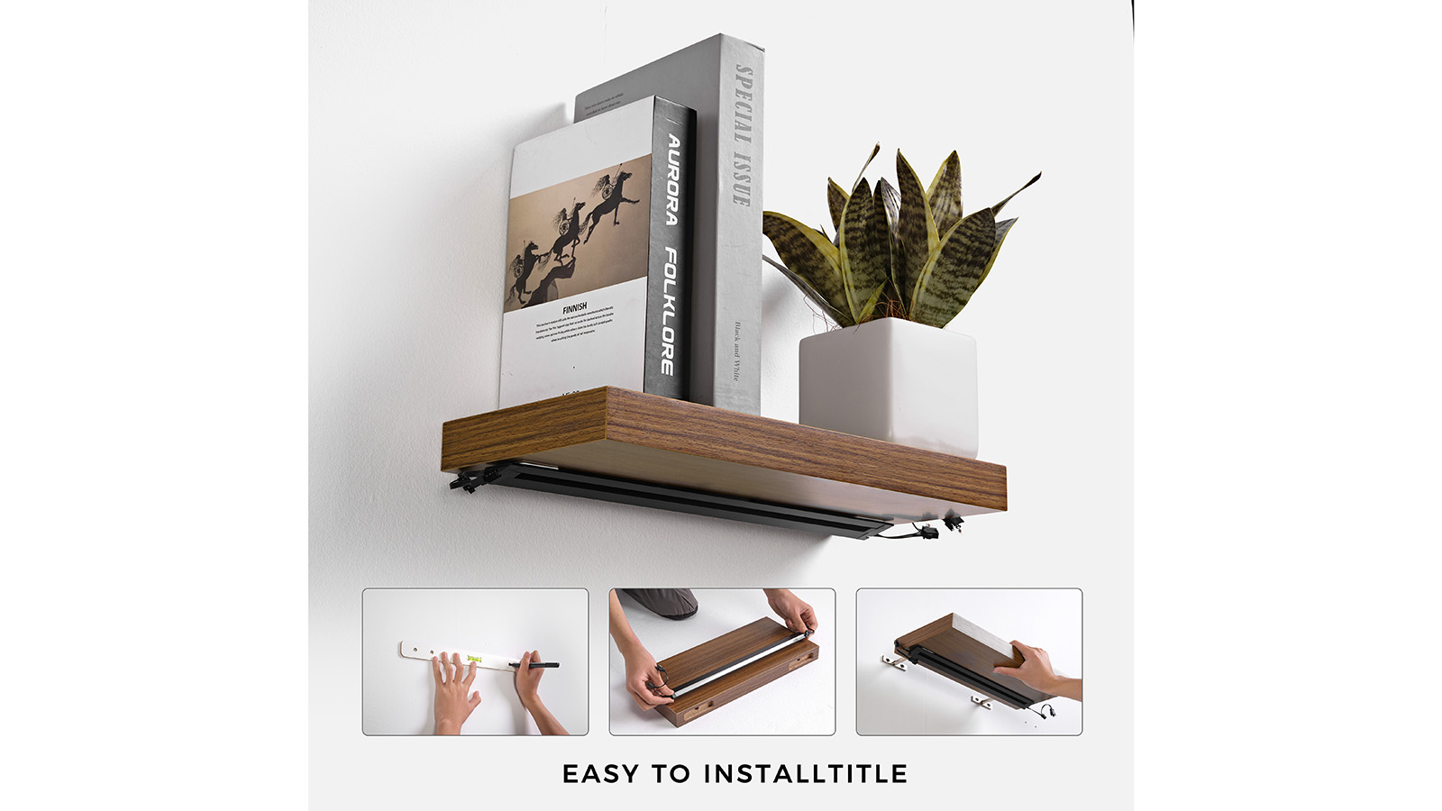 EUREKA ERGONOMIC Floating Wall Shelves with Lighting at a glance.