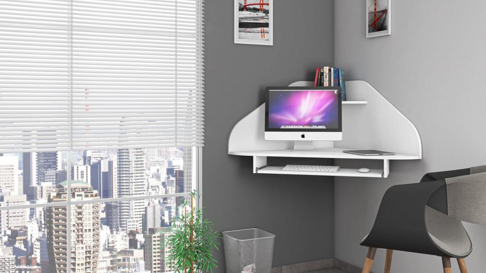 Skyline Decor Corner Desk with Keyboard Shelf: White